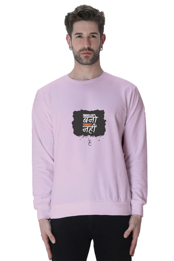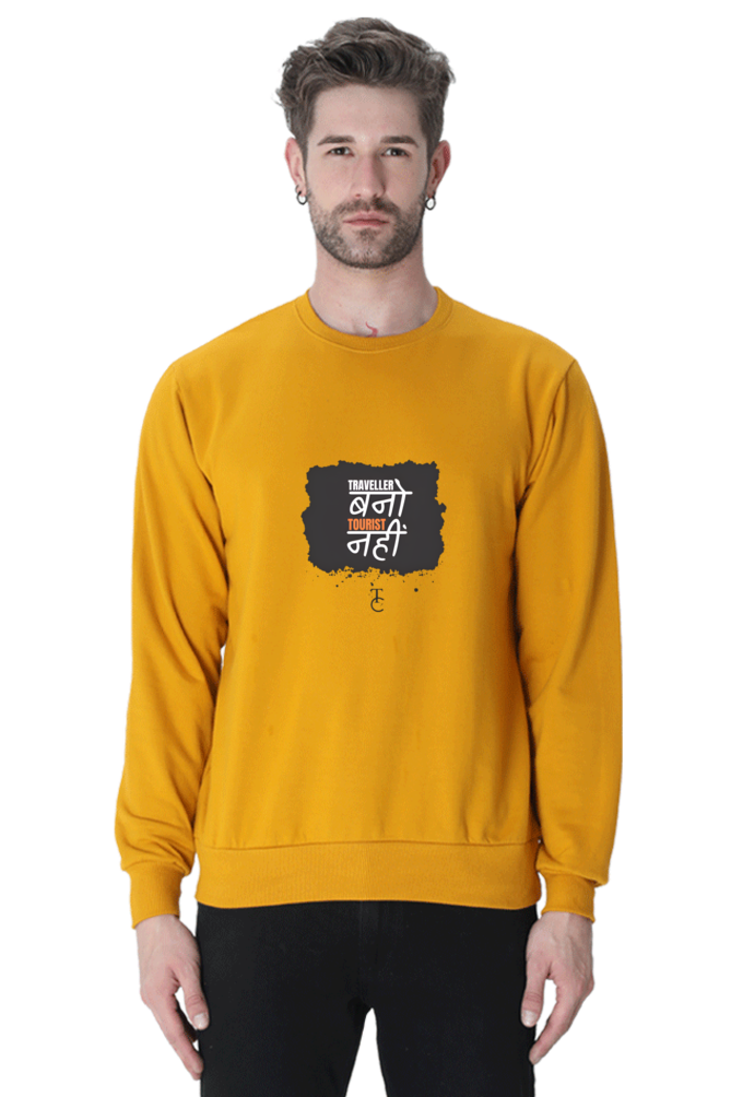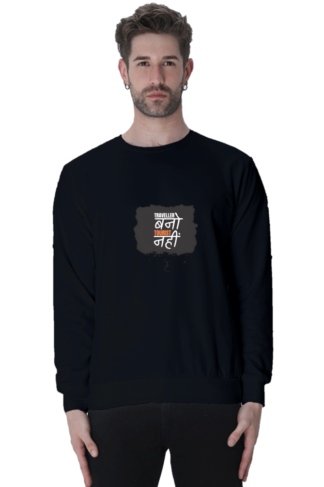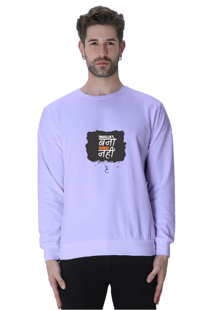 Embrace your wanderlust with our "Traveller बनाना Tourist नहीं" sweatshirt. This bold statement piece captures the essence of exploration and adventure. Crafted from 180 GSM fabric, this heavyweight (600gm+) garment offers unmatched comfort and durability, perfect for your next journey.